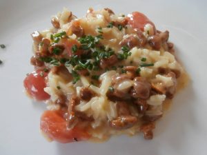 →Hier findest du ein Rezept für ein Risotto mit Pfifferlingen. Das schmeckt so richtig cremig lecker und ganz ohne Fleisch. Und du brauchst auch nicht unbedingt den teuren Risottoreis zu kaufen, für die ersten Versuche reicht auf jeden Fall ein preisgünstiger Jasminreis, mit dem ich beste Erfahrungen gemacht habe. Auch als Käse kommen durchaus andere Sorten als Parmesan in Frage. Die Pfifferlinge kannst du auch durch Champignons oder anderes ersetzen. Da sind deiner Erxperimentierfreude eigentlich keine Grenzen gesetzt.