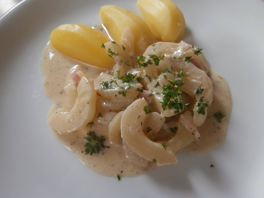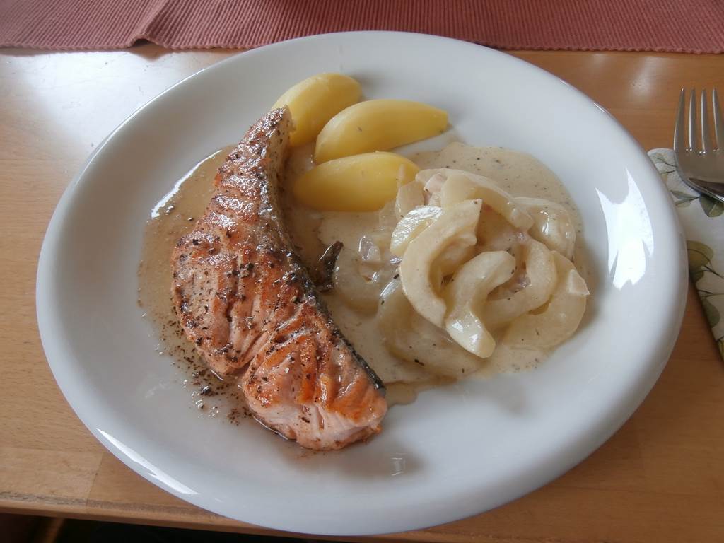 Schmorgurken gab es schon bei meiner Oma. Sie schmecken aber auch heute noch total lecker, ob als vegetarisches Gericht oder als Beilage. Aber bitte keine Salatgurken aus dem Supermarkt verwenden. Zum Schmoren am besten geeignet sind Freilandgurken, die nicht so lang werden und etwas kräftiger ausfallen. In meinem Hochbeet habe ich die Sorte „Delikatess“, eine sehr ertragreiche Gurke, die als Salat und geschmort einfach lecker ist. Sehr gut schmeckt gebratener Lachs dazu. Eine nicht zu dicke Scheibe Lachs in Butter sanft braten, mit grobem Salz und Pfeffer würzen und anschließend mit brauner Butter servieren. Hier hast du das leckere →Rezept