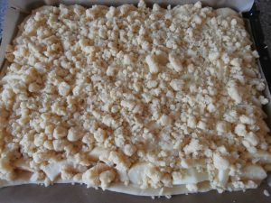 Wie wäre es mit einem schönen Apfelkuchen auf die alte, traditionelle Art: Ein großes Blech voll Hefekuchen mit Äpfeln von alten Sorten aus dem Garten oder einer Streuobstwiese. Am besten schmeckt dazu immer noch der gute alte Boskop. Er ist säuerlich und wird beim Backen schön weich. Darüber großzügig Streusel gegeben – das schmeckt wie zu Urgroßmutters Zeiten. Da kommen nostalgische Erinnerungen an Kindertage auf, als das ganze Haus nach frisch Gebackenem duftete. Hol dir die Erinnerung zurück mit meinem →Apfelkuchen vom Blech mit Streuseln.