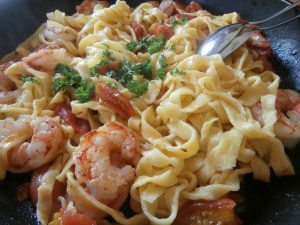 Tagliatelle mit Tomaten und Garnelen