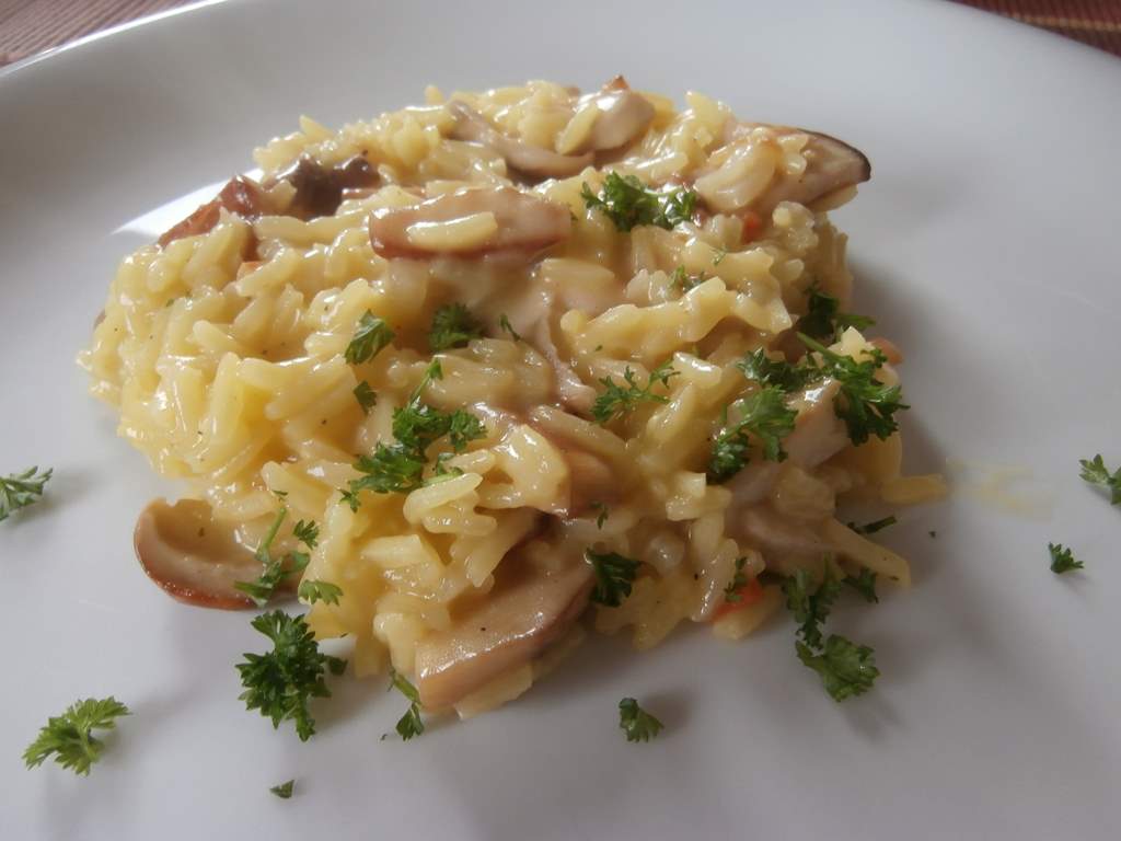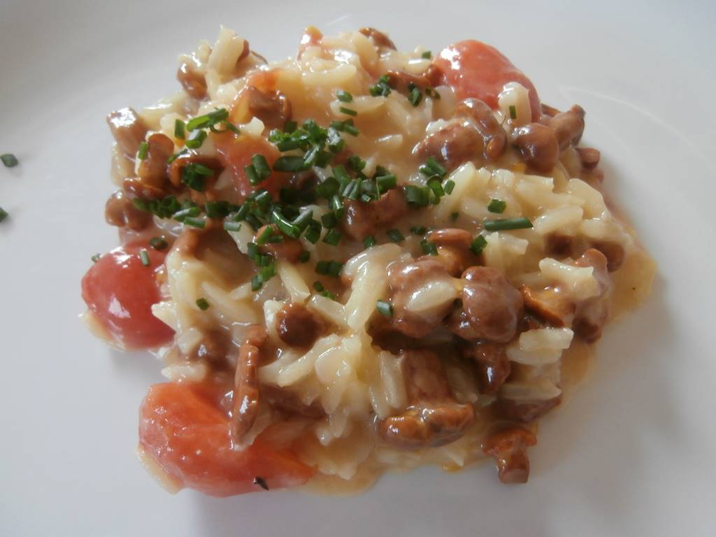 →Hier findest du ein Rezept für ein Risotto mit Pfifferlingen. Das schmeckt so richtig cremig lecker und ganz ohne Fleisch. Und du brauchst auch nicht unbedingt den teuren Risottoreis zu kaufen, für die ersten Versuche reicht auf jeden Fall ein preisgünstiger Jasminreis, mit dem ich beste Erfahrungen gemacht habe. Auch als Käse kommen durchaus andere Sorten als Parmesan in Frage. Die Pfifferlinge kannst du auch durch Champignons oder anderes ersetzen. Da sind deiner Erxperimentierfreude eigentlich keine Grenzen gesetzt.