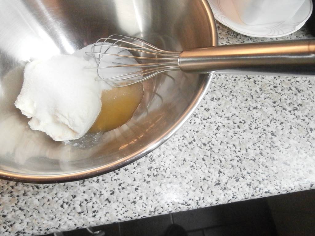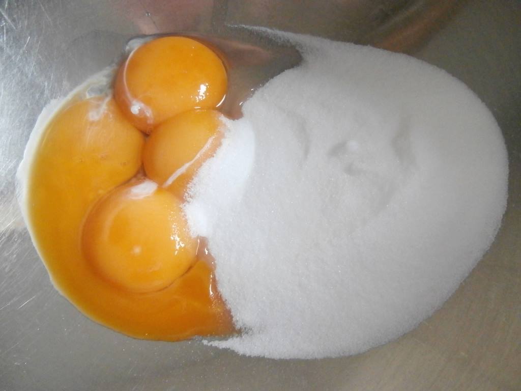 - Das Ei mit dem Zucker schaumig aufschlagen.
