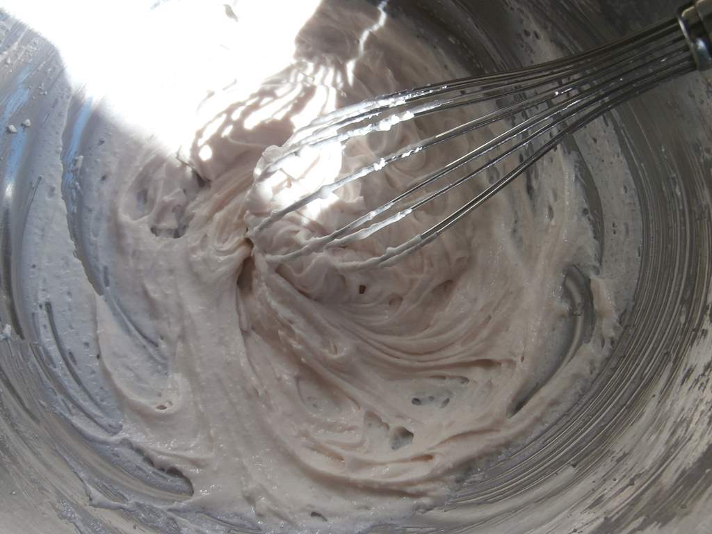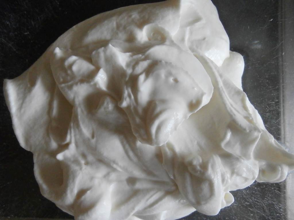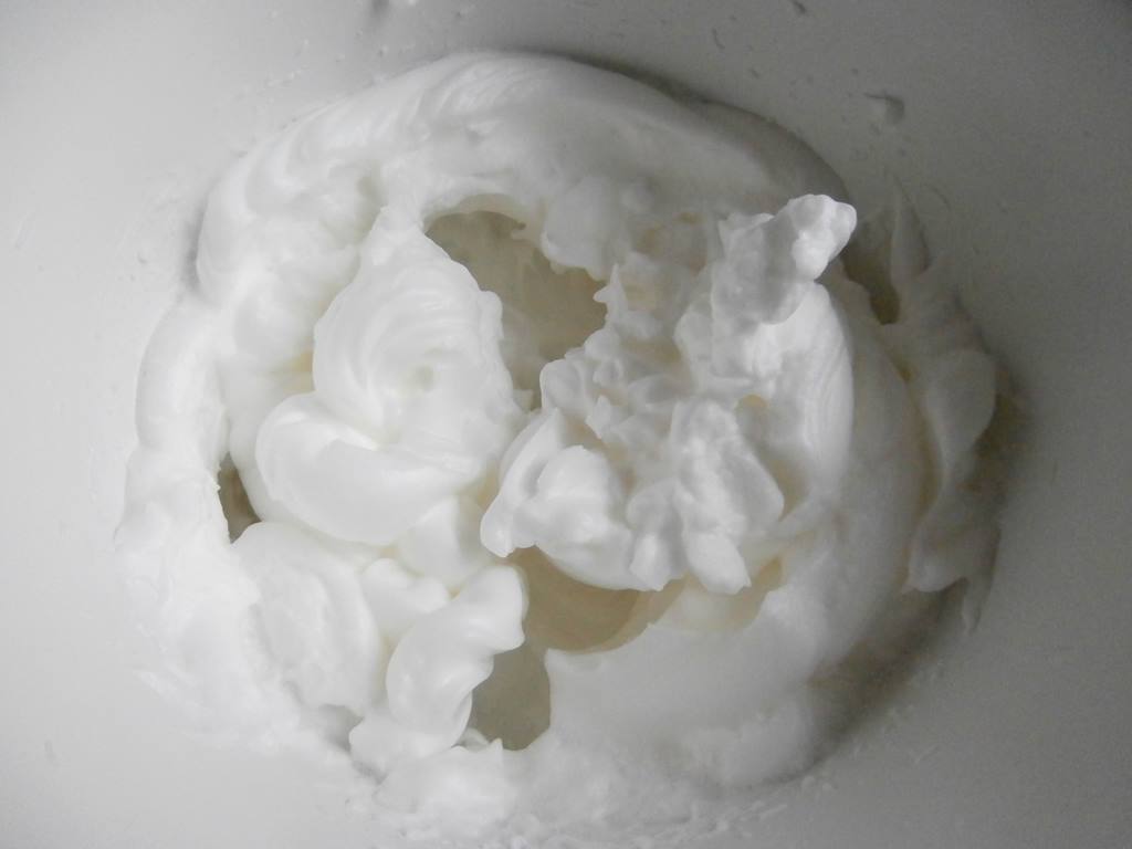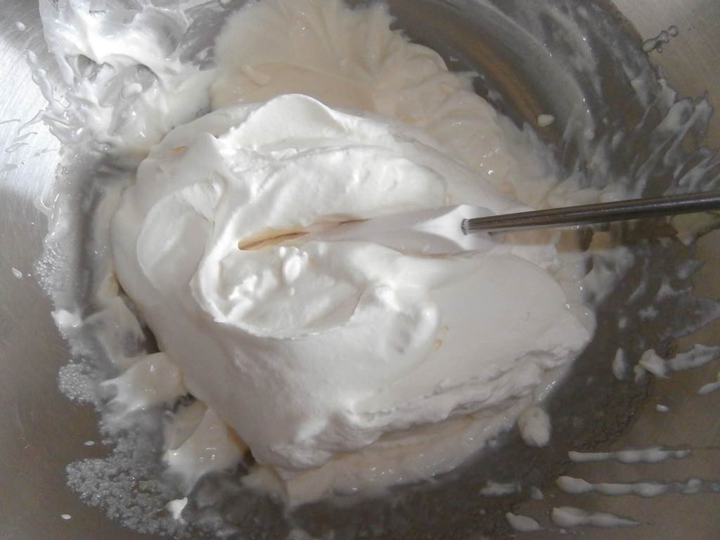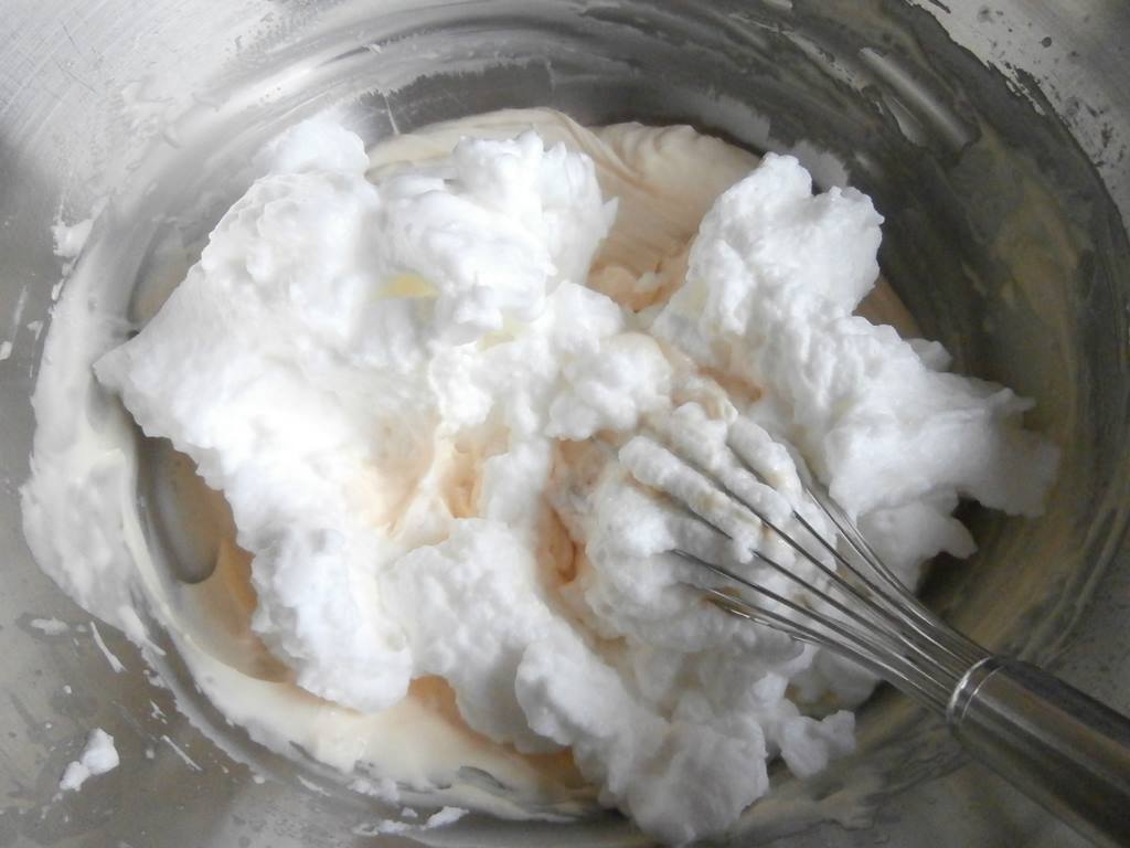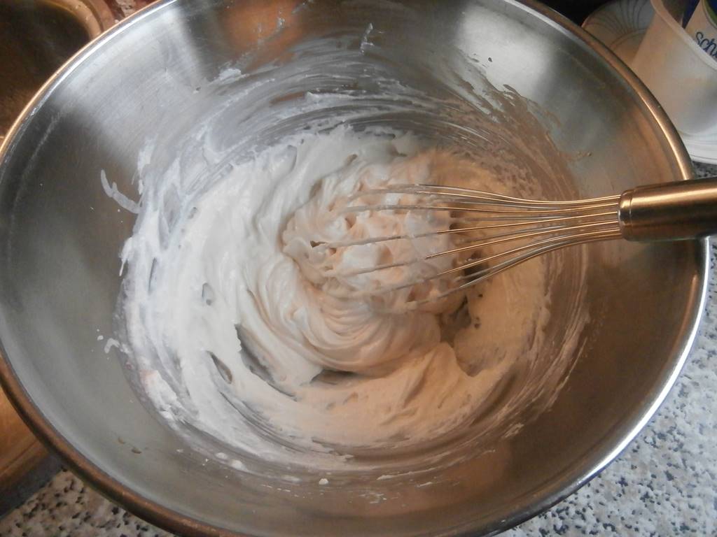 - Die schön fest geschlagene Sahne dazugeben und mit einem Teigschaber sorgfältig unterrühren.
