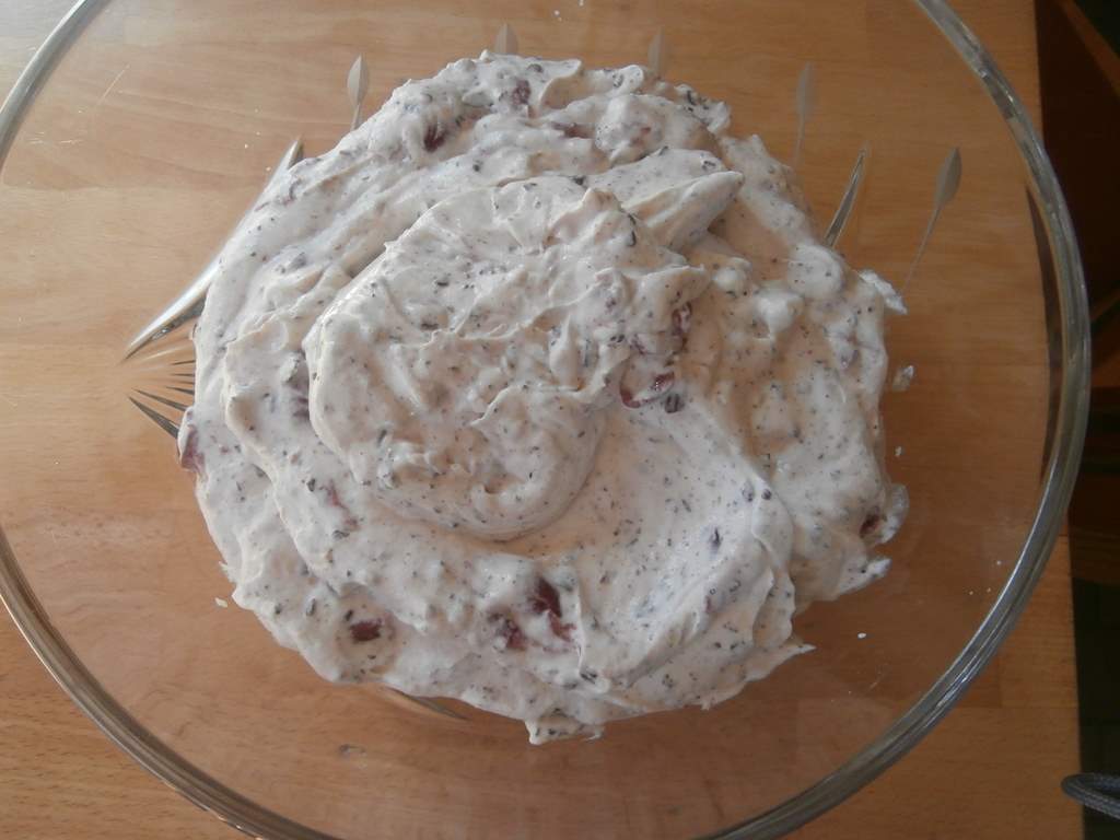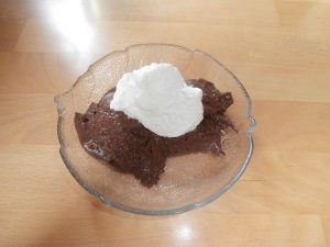 - Die geschlagene Sahne mit einem Teigschaber unterziehen bis alles gut vermischt ist. In eine Schüssel füllen und ab in den Kühlschrank.