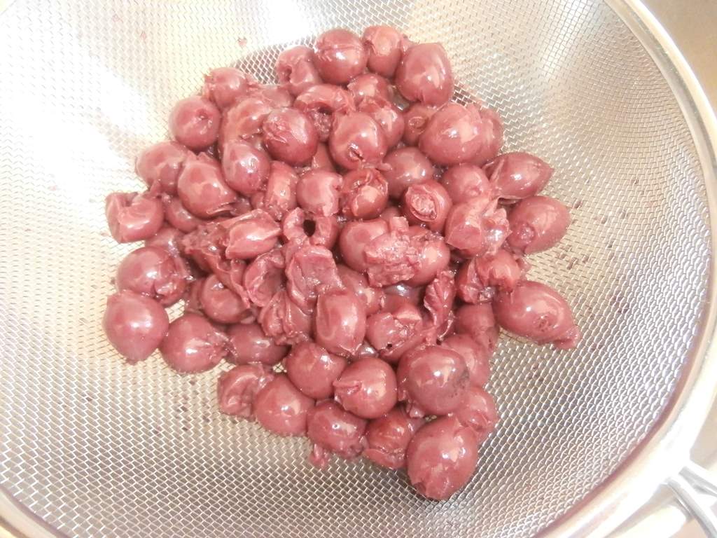 - Die Kirschen abgießen und gut abtropfen lassen. Den Saft auffangen.