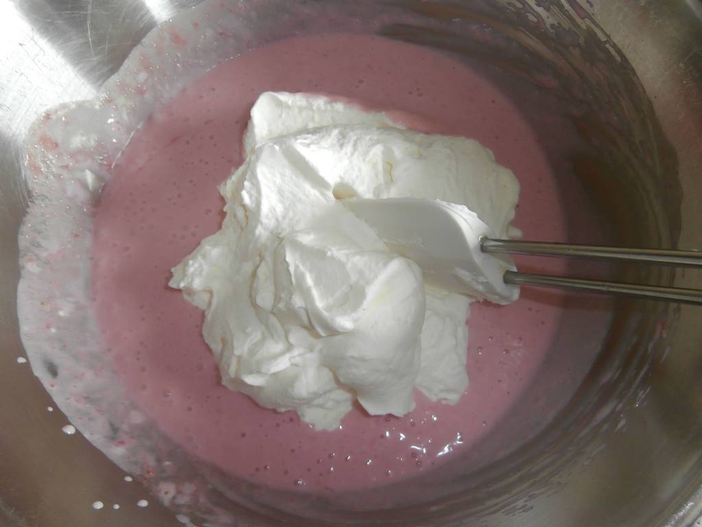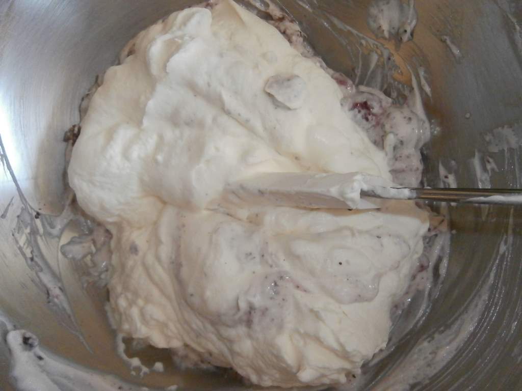 - Zum Schluss die geschlagene Sahne mit einem Teigschaber gleichmäßig unterziehen.