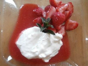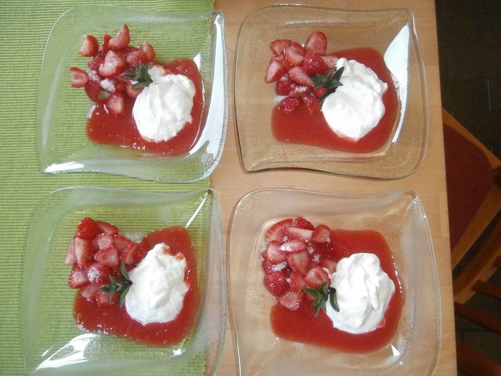 Hier hast Du einen erfrischenden Nachtisch, der nach Früchten als Begleitung oder einer fruchtigen Sauce geradezu ruft. Und im Frühsommer, wenn die Erdbeerzeit losgeht, dann mache ich dazu eine →Erdbeersauce, dann noch ein paar frische Erdbeeren (→Tipp) – da könnte ich immer weiter essen. Bei mir beginnt übrigens die Erdbeerzeit im Mai, wenn es regionale Freiland-Erdbeeren zu kaufen gibt. Alles andere kommt überhaupt nicht auf den Tisch bzw. ins Essen. Ich finde es auch nicht sinnvoll, zu einer Jahreszeit Erdbeeren zu essen, wenn sie bei uns nicht wachsen.
