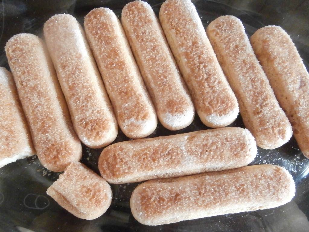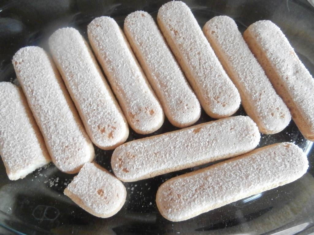 - Eine passend große flache Form mit Löffelbiskiuts auslegen.
