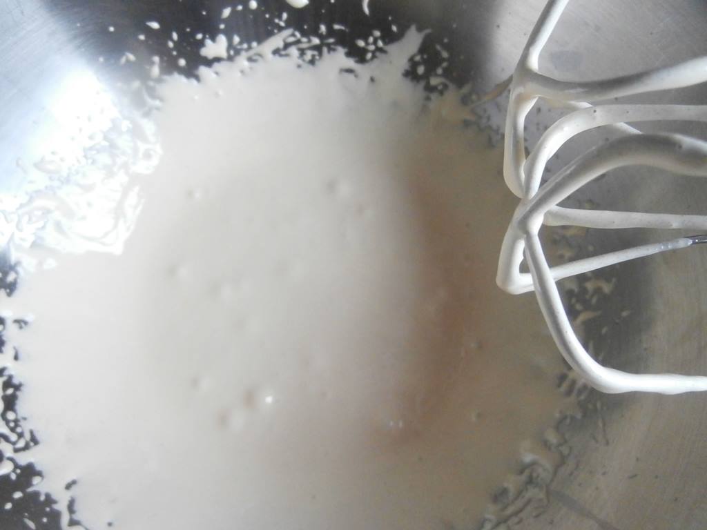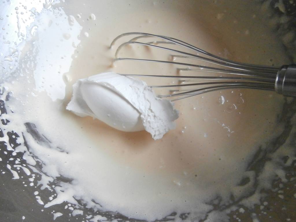 - Vom Herd ziehen, das Eiweiß sehr fest aufschlagen (Handrührgerät) und portionsweise schnell in die Puddingmasse einrühren.
