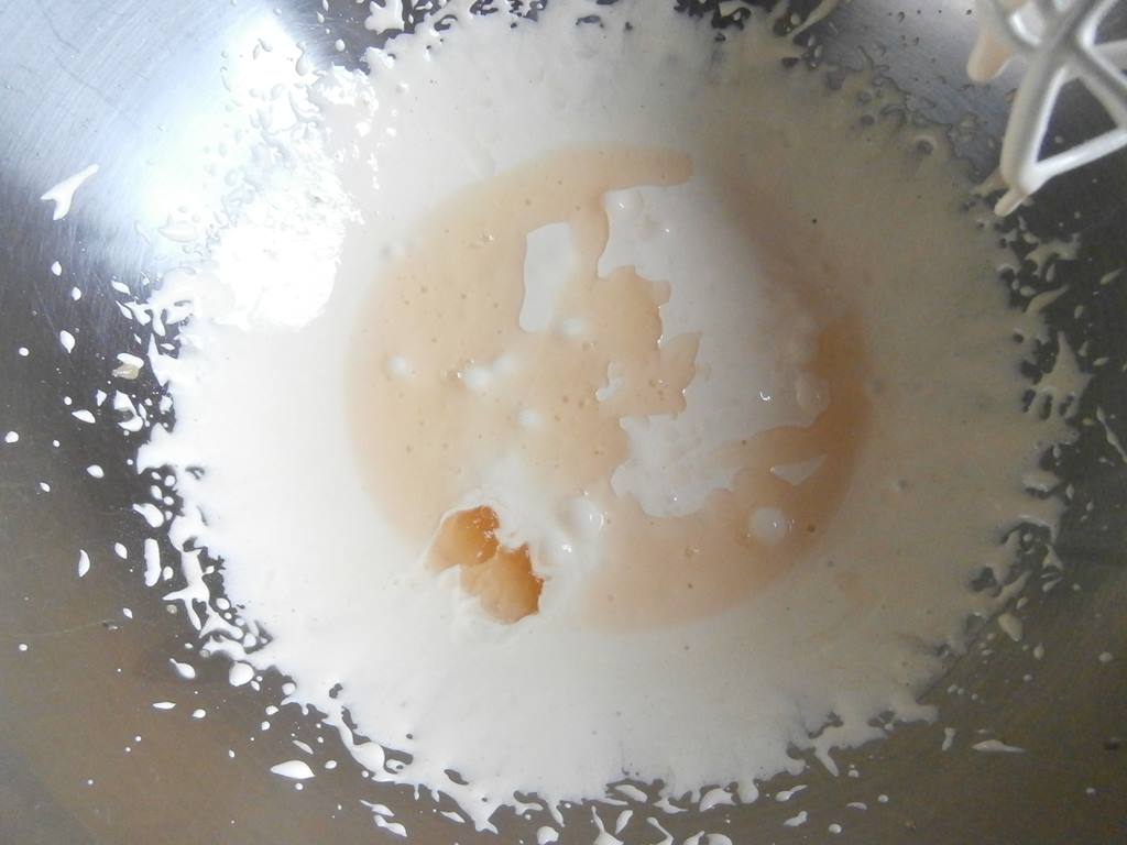 - Die Eigelbe mit dem Zucker zu einer hellen cremigen Masse aufschlagen.