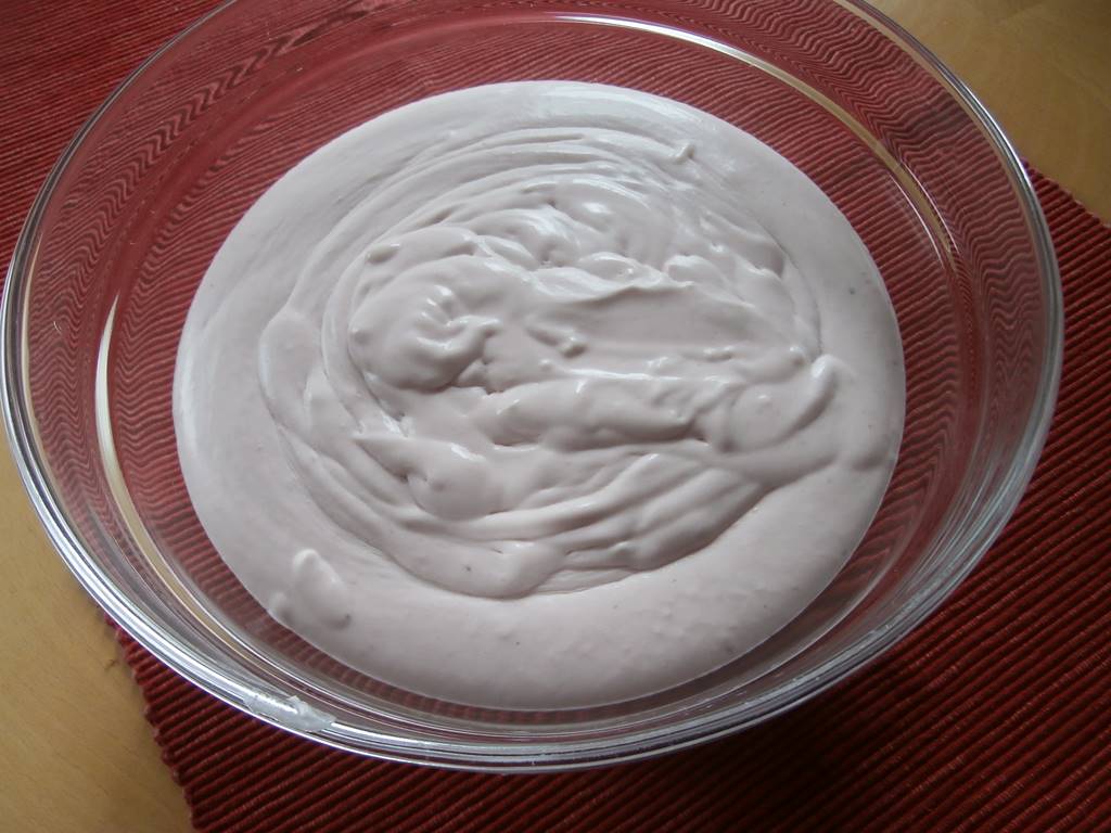 - Die flüssige Gelatine langsam in die Joghurt-Sahne einrühren.