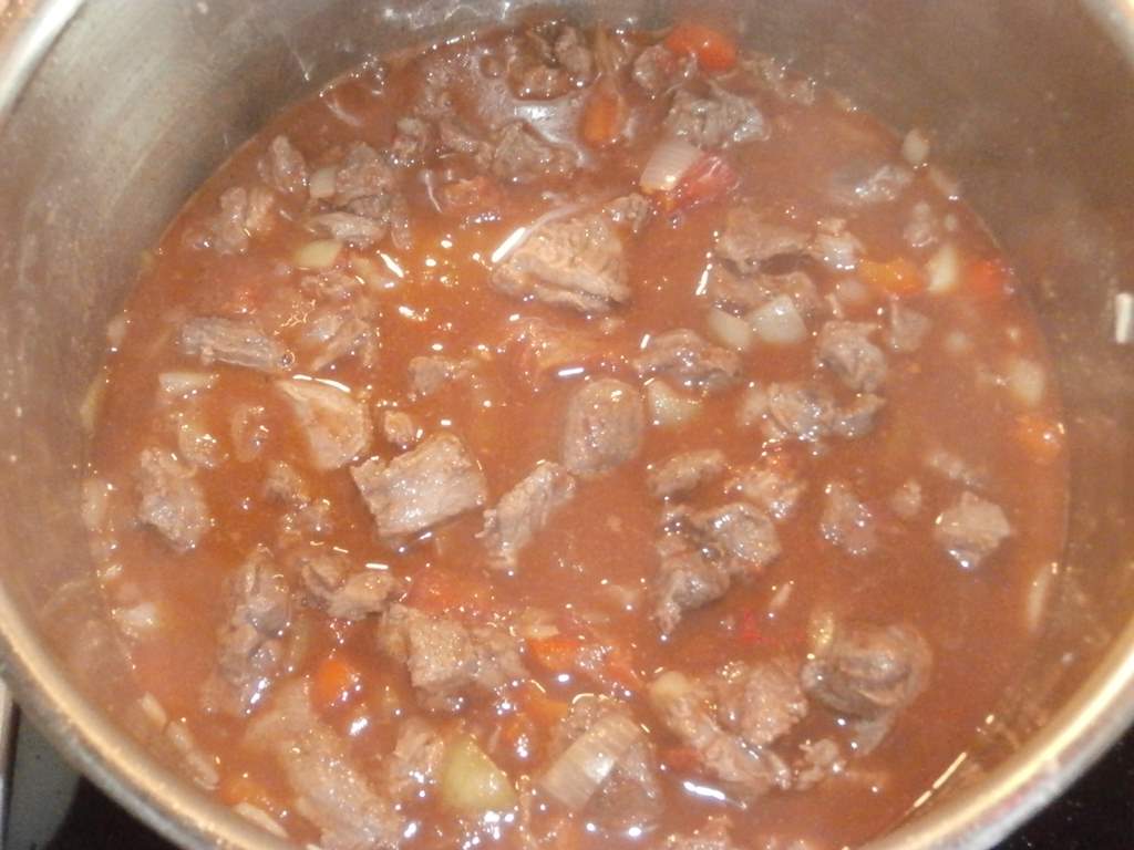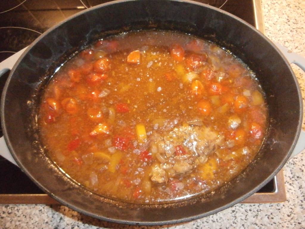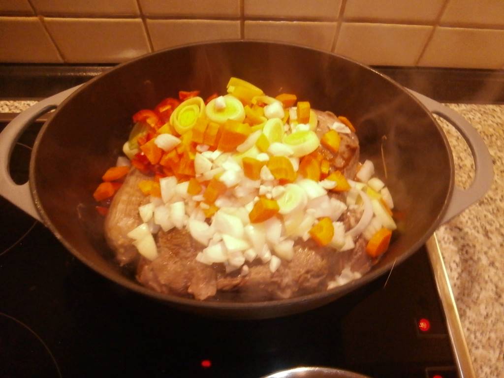 • Deckel auflegen und bei milder Hize ca. 2 Stunden sanft köcheln.