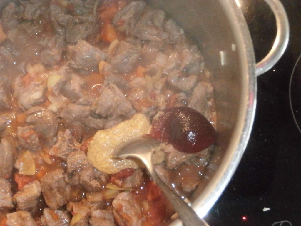 • Tomaten, Senf und Johannisbeergelee dazugeben, durchrühren und kurz schmoren lassen.