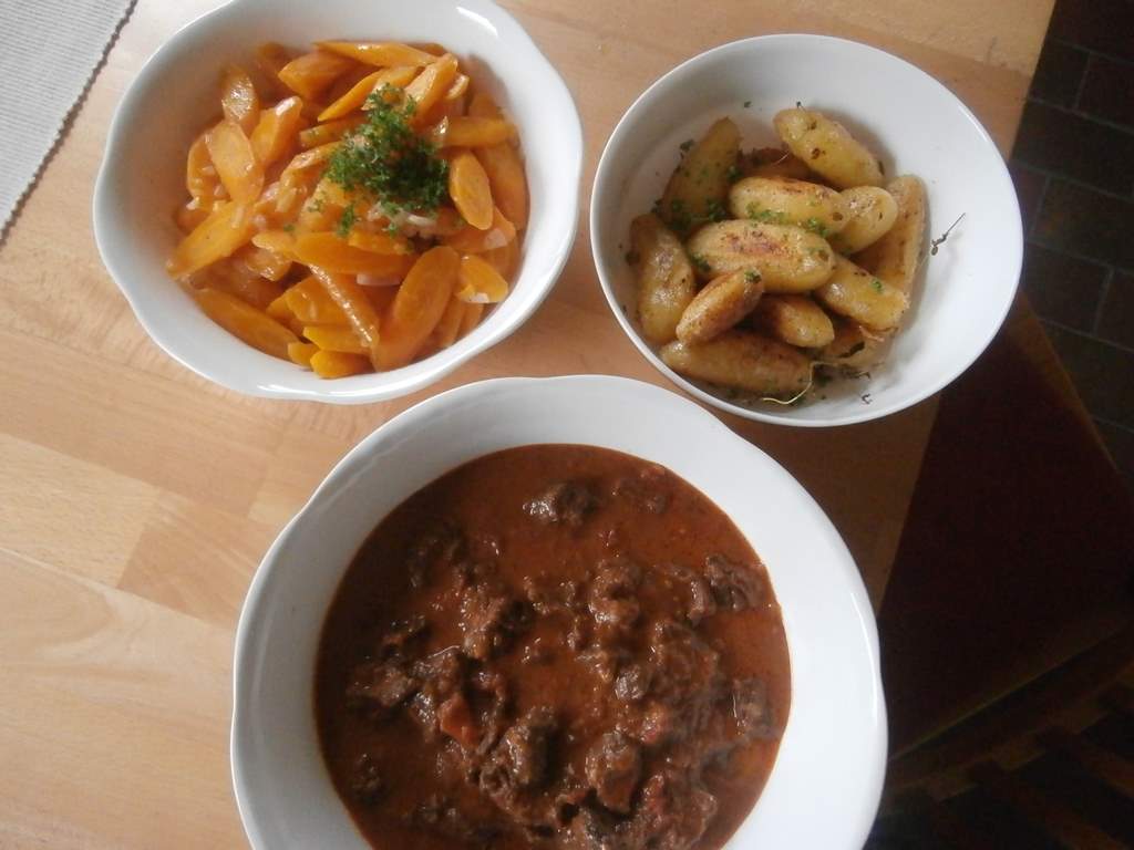 Es ist wirklich eine Menge Arbeit, die sich aber auf jeden Fall lohnt. Dazu schmecken Kartoffeln in nahezu allen Variationen, ich nehme am liebsten Kartoffelpüree.