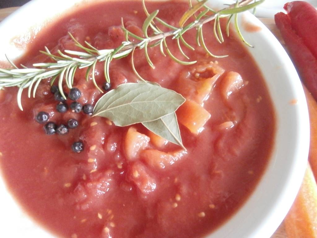 Die Tomaten kommen übrigens aus meinem Garten. Unter →Aus dem Garten schreibe ich etwas (nicht nur) zum Tomatenanbau. Soviel aber vorweg: Bessere Tomaten als die selbst gezogenen musst du lange suchen.