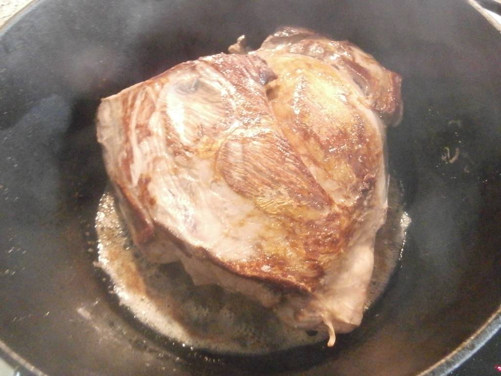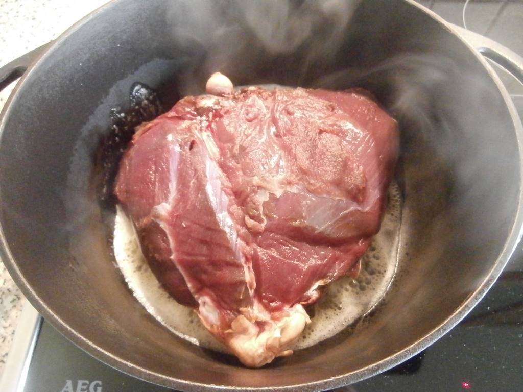 • Die Keule im heißen Fett von allen Seiten anbraten.