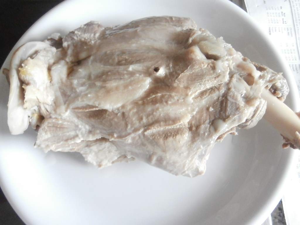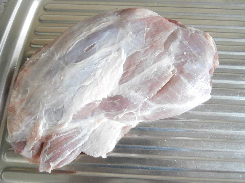 • Die Schulter kalt abspülen, mit Küchenkrepp abtupfen, in das Salzwasser legen und aufkochen.