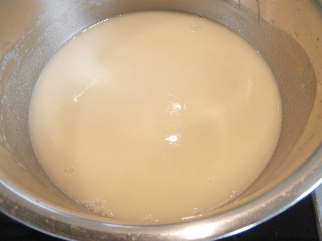 • Mit dem kalten Sud langsam unter ständigem Rühren aufgießen, bis eine sämige Konsistenz entsteht.