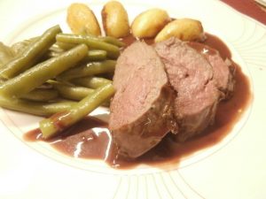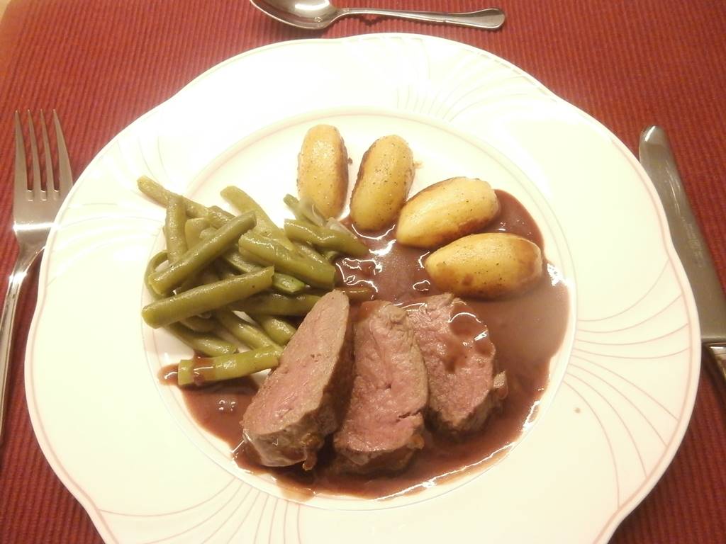 Dieses Rezept ähnelt ziemlich demjenigen, das du unter →Rücken vom Hirschkalb findest. Allerdings ist Rehrücken, zumal von einem jungen Tier, noch viel zarter und damit empfindlicher als der Rücken von einem jungen Hirsch oder Hirschkalb. Deshalb muss es sehr sorgfältig gebraten werden und darf auch nicht zu lange im Ofen bleiben, damit es schön rosa aussieht. Bei der Sauce habe ich auf eine Mehlschwitze ganz verzichtet, das macht sie leichter und vielleicht auch schmackhafter.