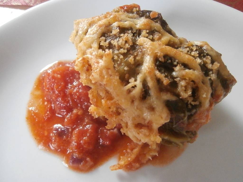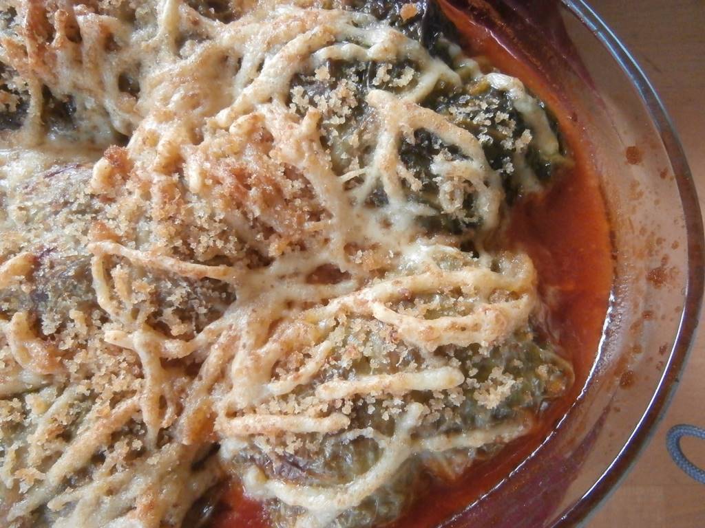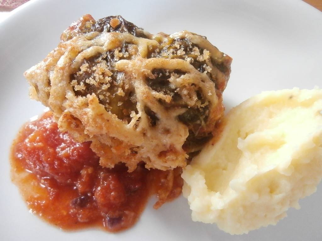 • Auf jedes Wirsingblatt eine Portion Teig geben und zusammenrollen.