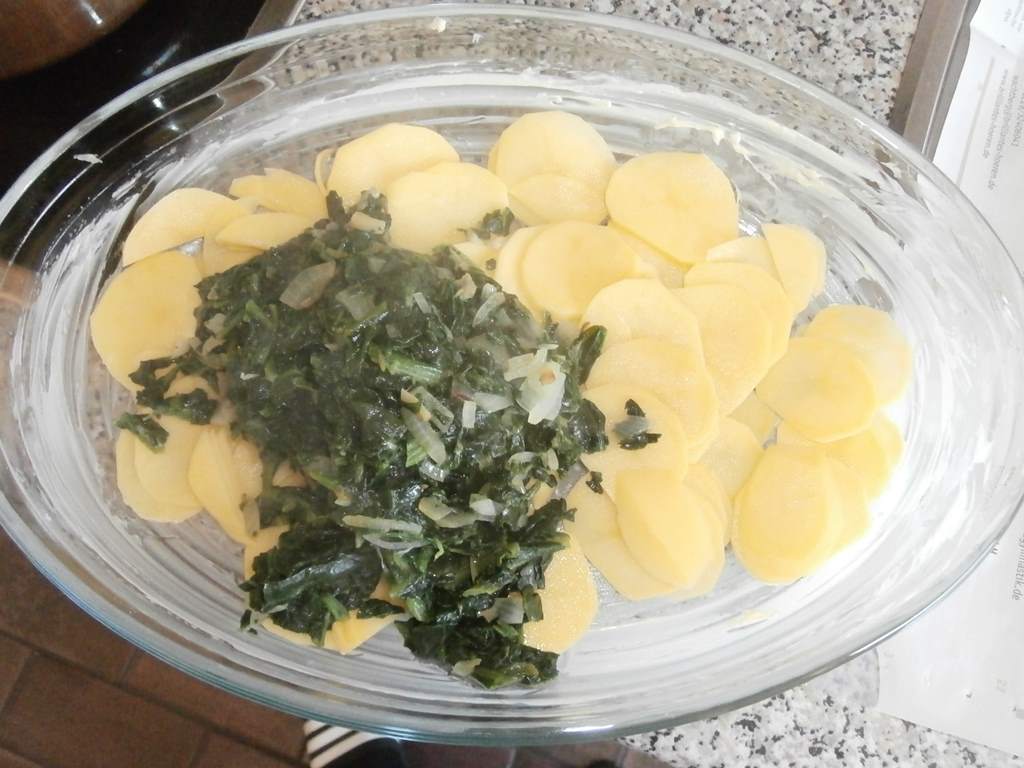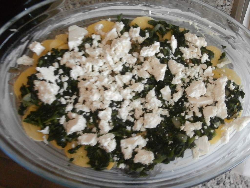 Kartoffel-Spinat-Gratin mit Schafskäse