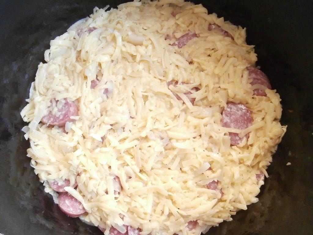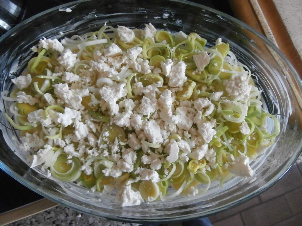 - Mit der anderen Hälfte Lauch und Käse das Ganze noch einmal.