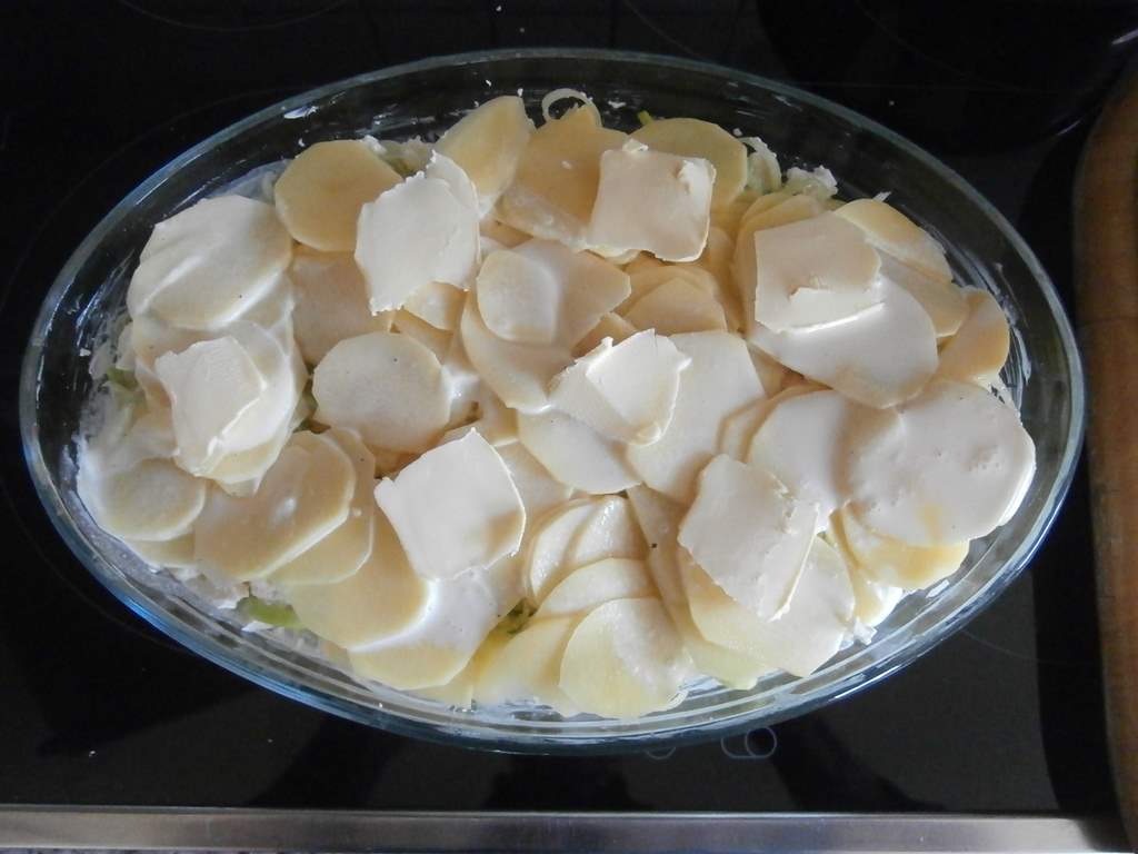 - Die restlichen Kartoffelscheiben als oberste Schicht darüber legen.