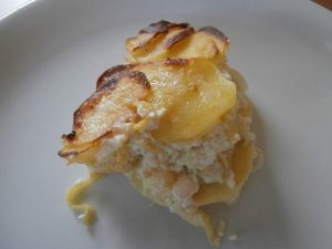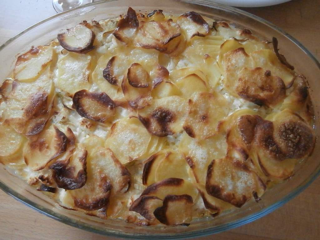 Kartoffel-Lauch-Gratin mit Schafskäse