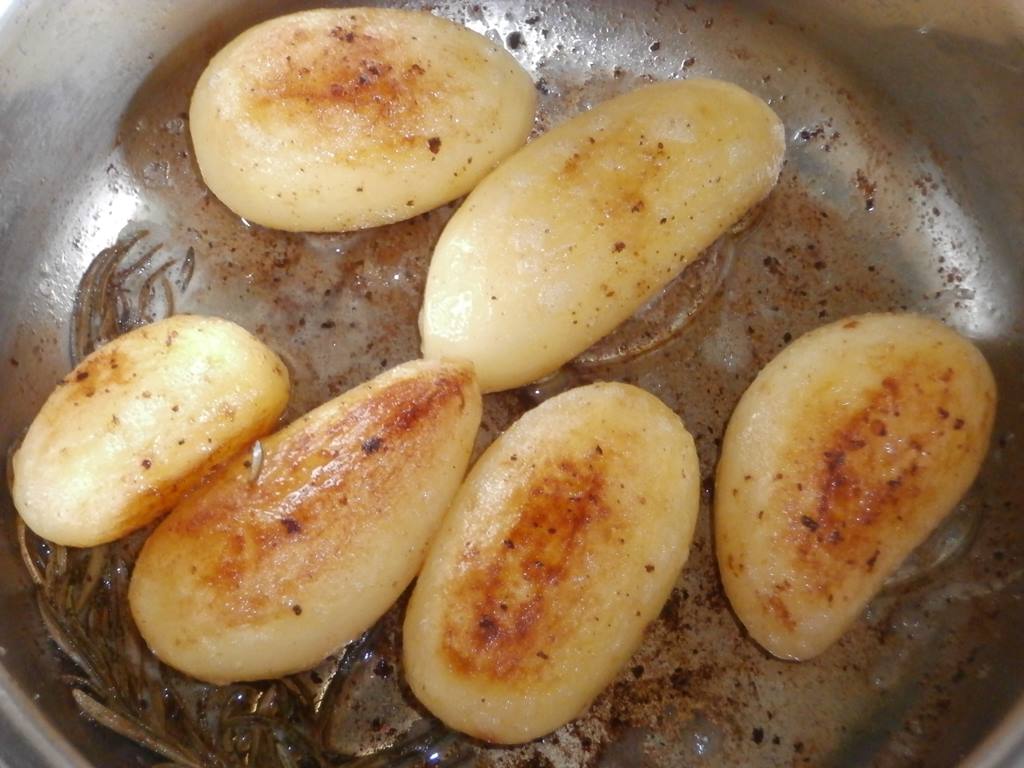 - Kurz anbraten, dann Deckel auflegen und bei mittlerer Hitze 20 – 25 Minuten garen (Zeit hängt ein wenig von der Kartoffelsorte ab). Der Deckel sollte immer geschlossen bleiben.