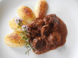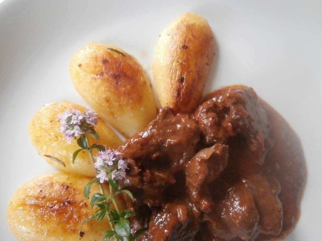 Die klassische Beilage dazu ist hausgemachtes lauwarmes →Apfelkompott. Da könnte man sich reinsetzen.