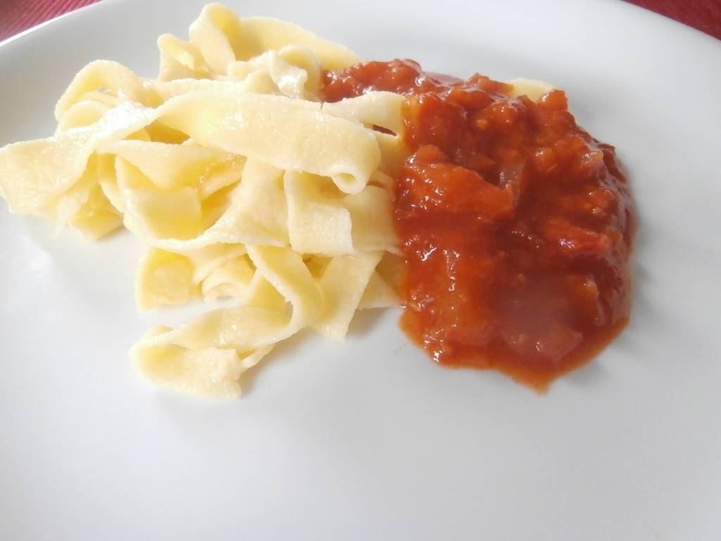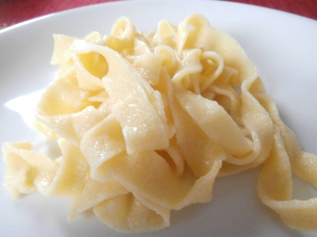 Du kannst sie auch italienisch Tagliatelle nennen, am Geschmack ändert sich dadurch nichts. Nudeln sind zwar keine Kartoffeln, haben aber oft eine ähnliche Funktion auf dem Teller. Sie eignen sich sehr gut als Beilage zu Fleisch und Fisch, können aber auch selbst die Hauptrolle spielen. Auf jeden Fall sind selbstgemachte frische Nudeln ein Highlight und übertreffen die fertigen Trockenprodukte in jeder Hinsicht. Der Teig ist die klassische Version aus der italienischen Küche, die Tagliatelle-Form ist am besten geeignet, wenn du (wie ich) keine Nudelmaschine besitzt. Ansonsten hat der Italiener ja eine Fülle von Formen und liebevollen Namen für unsere Nudeln.