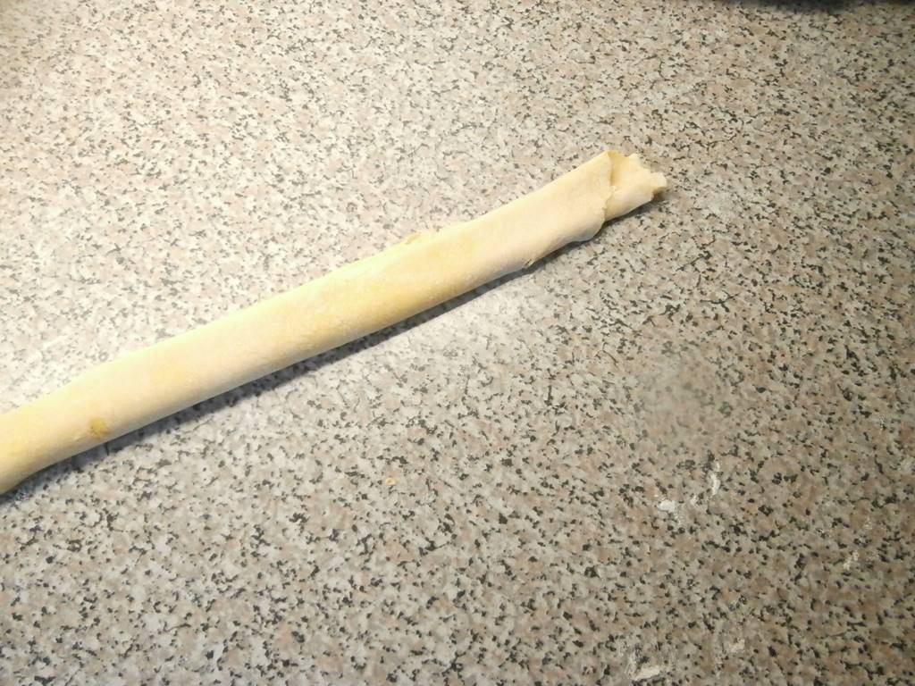 - Die Masse auf ein frisches Küchentuch geben, zu einer Rolle formen und in das Tuch einwickeln.