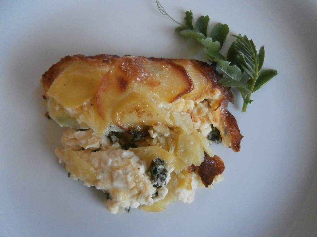 Kartoffel-Spinat-Gratin mit Schafskäse