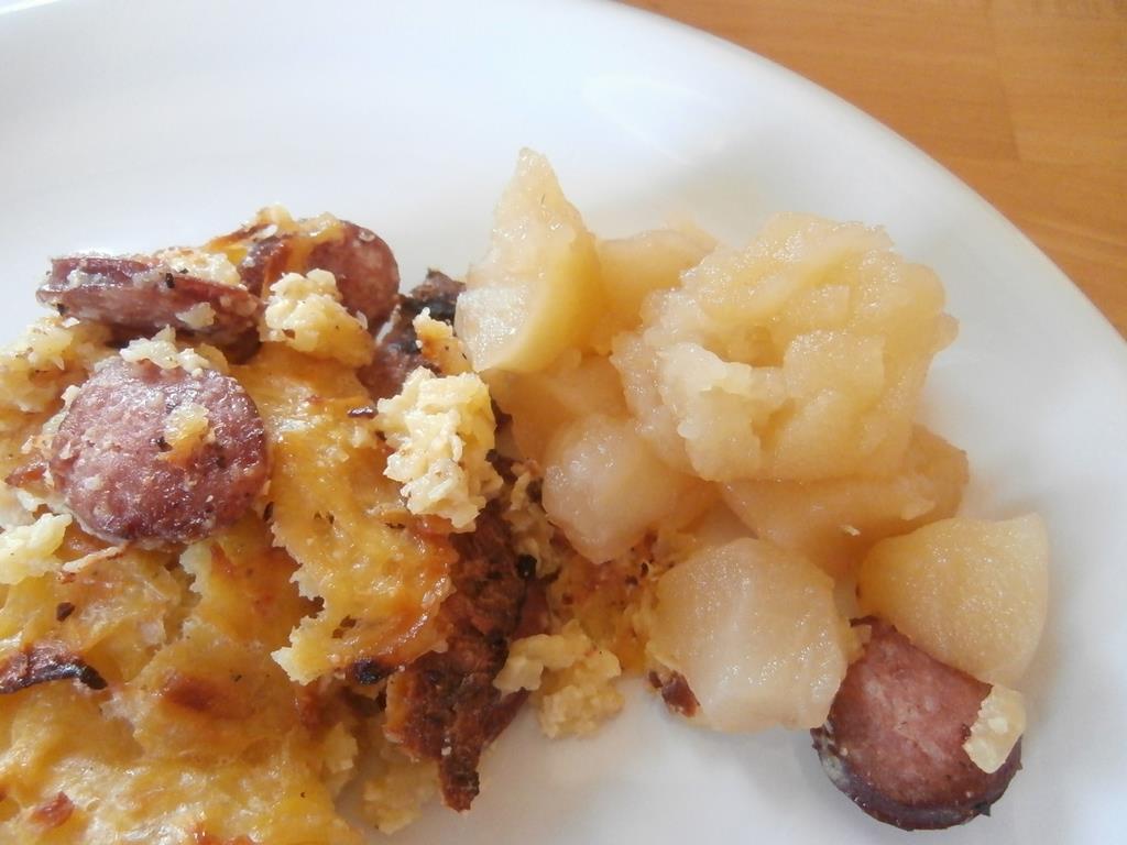 - Auf den Tisch damit, Apfelkompott dazu und alles aufessen.