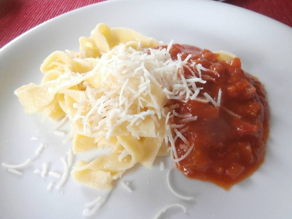 Du kannst sie auch italienisch Tagliatelle nennen, am Geschmack ändert sich dadurch nichts. Nudeln sind zwar keine Kartoffeln, haben aber oft eine ähnliche Funktion auf dem Teller. Sie eignen sich sehr gut als Beilage zu Fleisch und Fisch, können aber auch selbst die Hauptrolle spielen. Auf jeden Fall sind selbstgemachte frische Nudeln ein Highlight und übertreffen die fertigen Trockenprodukte in jeder Hinsicht. Der Teig ist die klassische Version aus der italienischen Küche, die Tagliatelle-Form ist am besten geeignet, wenn du (wie ich) keine Nudelmaschine besitzt. Ansonsten hat der Italiener ja eine Fülle von Formen und liebevollen Namen für unsere Nudeln.