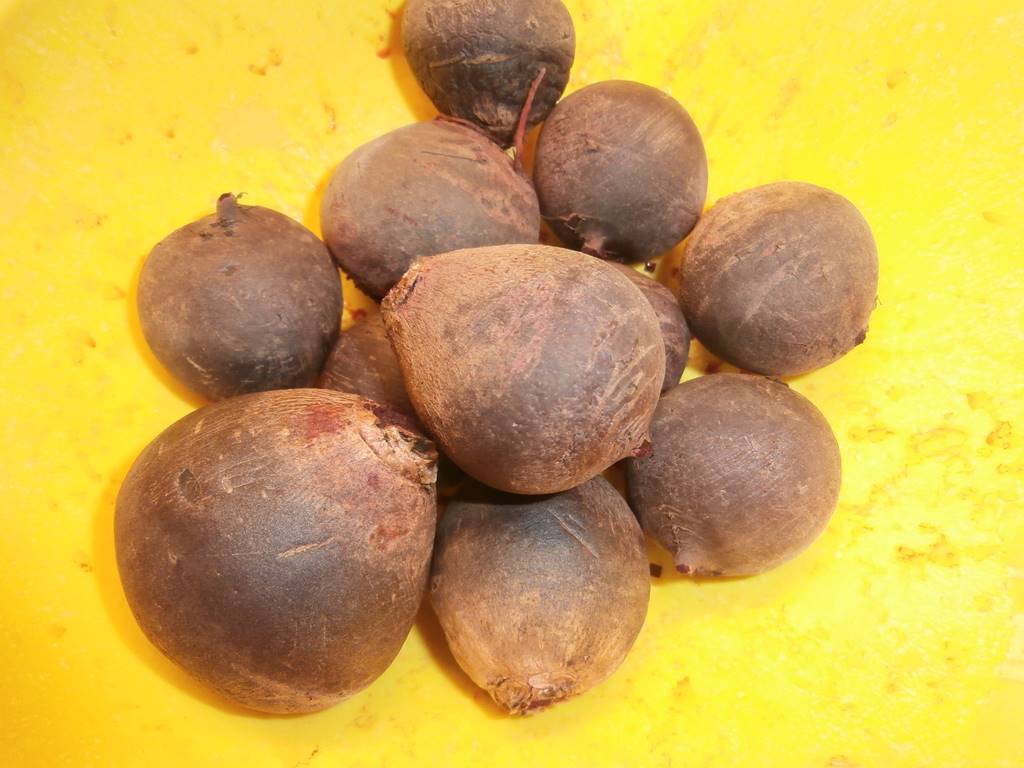- Die Rote-Bete-Knollen waschen und vorsichtig abbürsten.