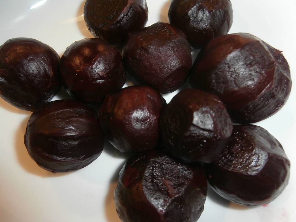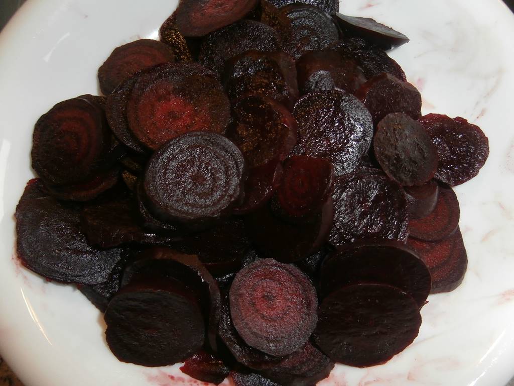 Die Rote Bete findest du in jedem Supermarkt im Glas, süß-säuerlich eingelegt, aber kaum als lecker zu bezeichnen. Da musst du dir schon die Mühe machen und die dunklen Knollen selbst kochen und weiter verarbeiten. Der Genuss ist zwar mit einigem Aufwand verbunden, aber es lohnt sich, denn das Ergebnis ist dann wirklich delikat. Bei der Verarbeitung der Rüben solltest du Einmal-Handschuhe benutzen, denn die Dinger färben alles rot. Als Alternative kannst du vorgekochte ganze Rote Bete in Folie eingeschweißt im Lebensmittelhandel kaufen. Am allerbesten sind natürlich selbst angebaute Knollen, die man nach der Ernte im späten Herbst problemlos in einer Laubkiste in der Garage lagern kann.