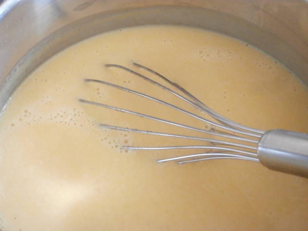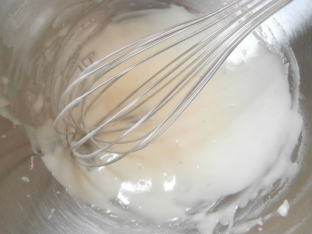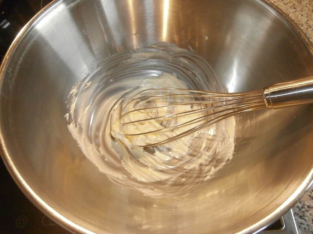 - Jetzt das Mark mit einem Schneebesen schaumig aufschlagen.