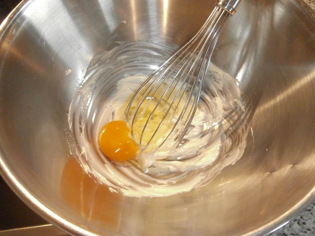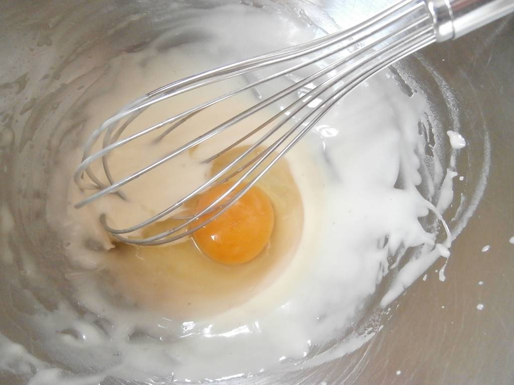 - Das Ei dazugeben und zu einer cremigen Masse verrühren.