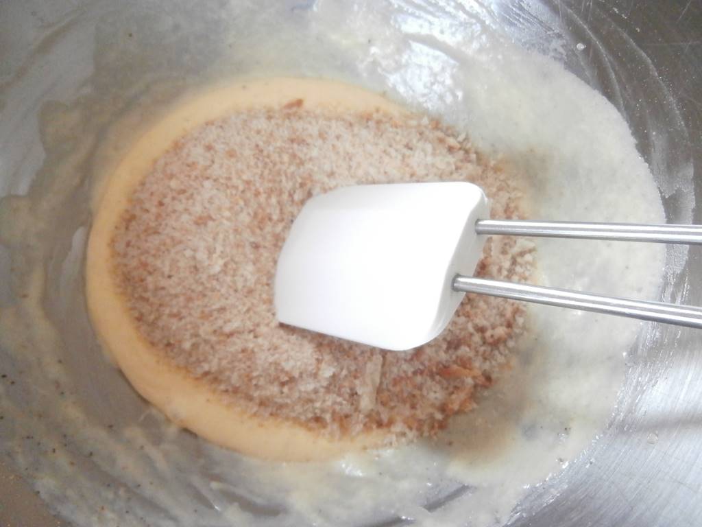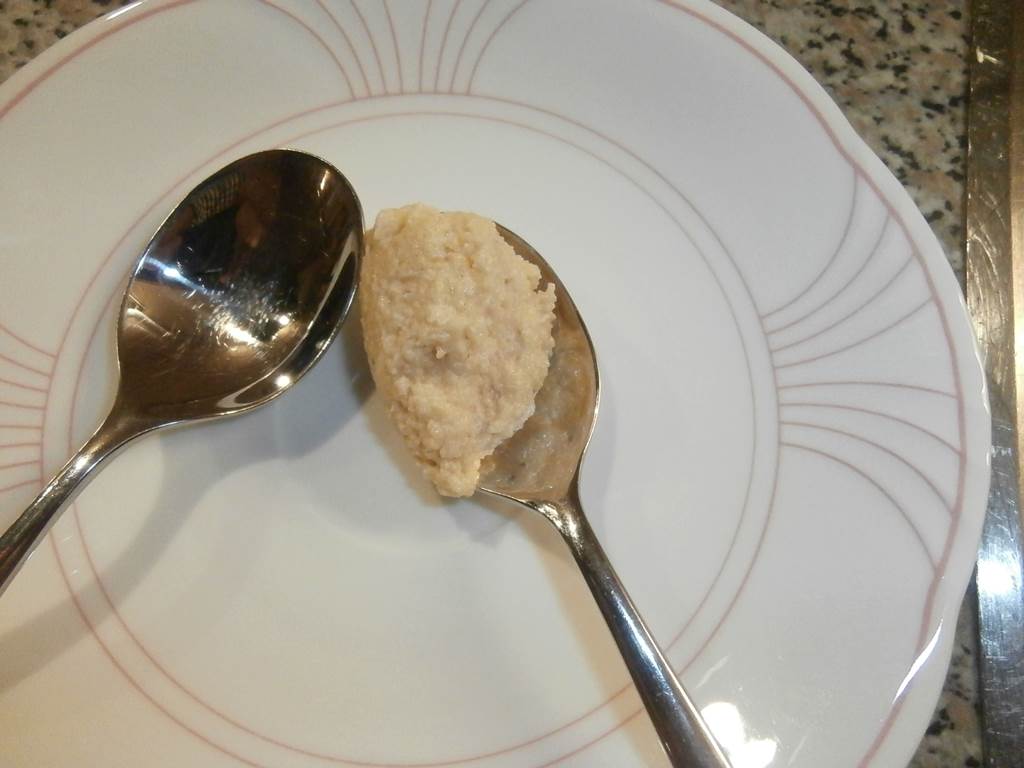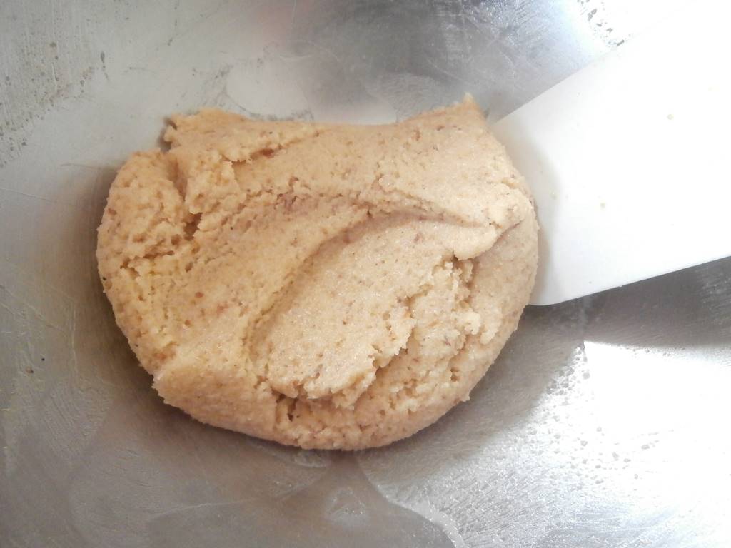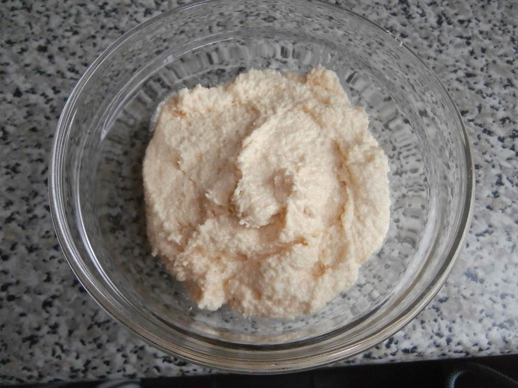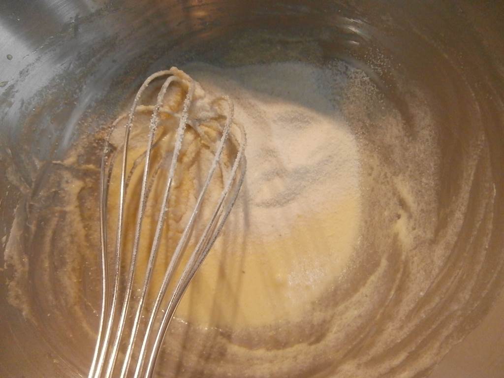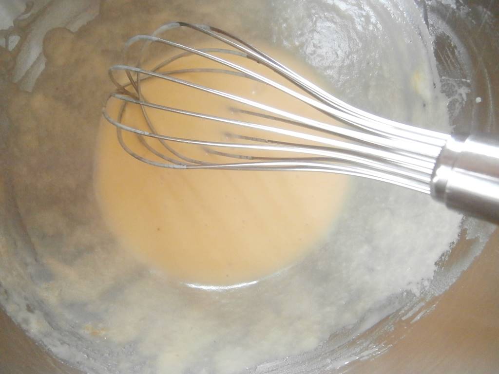 - Das Ei dazugeben und zu einer glatten Masse aufschlagen.