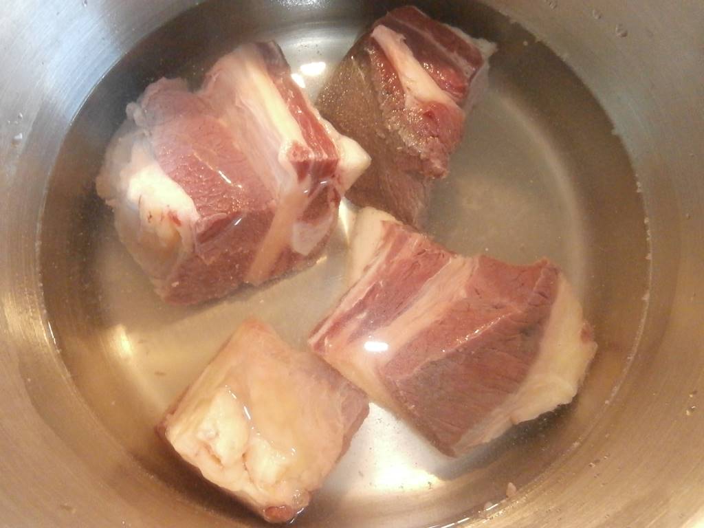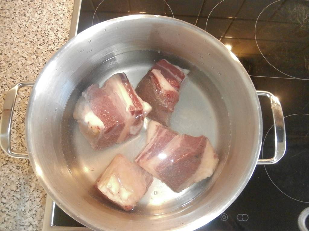- Das Rindfleisch in einen großen Topf legen und mit kaltem Wasser bedecken.