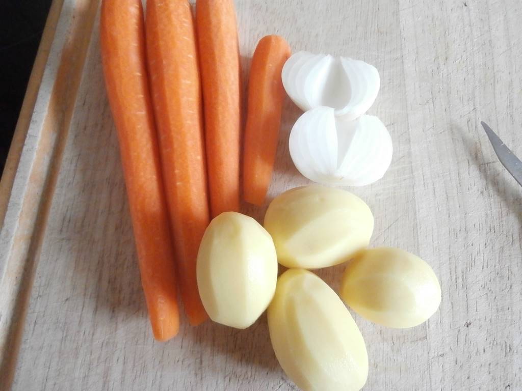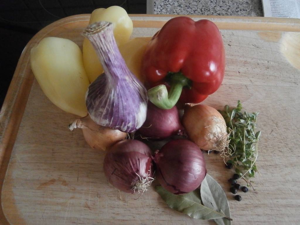 - 1 kg Suppenfleisch (z.B. Rippe oder Beinscheibe)