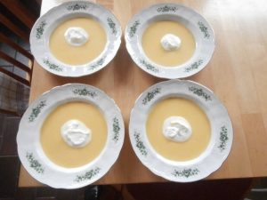 - Die passierte Suppe wieder aufkochen, mit Zitronensaft und Wermuth abschmecken, evtl. nachsalzen.