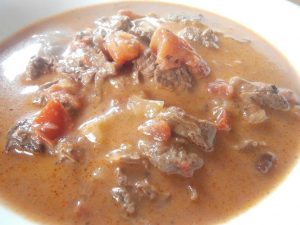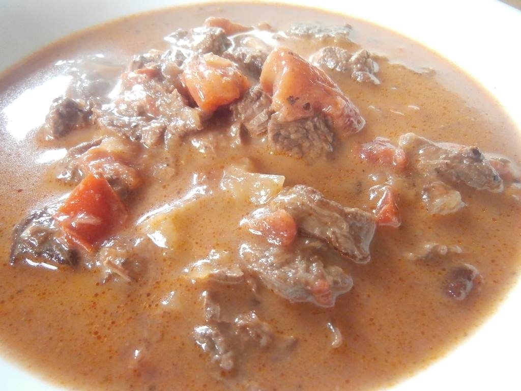 Eine kräftige Suppe, die mit oder ohne Brot locker als Hauptmahlzeit durchgeht, aber auch als Vorspeise gereicht werden kann, wenn der Teller nicht zu voll geschöpft wird. Ich habe in diesem Rezept Hirschgulasch genommen, es geht aber auch Wildschwein und natürlich Rindergulasch. Sie enthält außer der anständigen Menge Fleisch viel Gemüse und kommt ohne zusätzliche Bindemittel aus. Dadurch bleibt sie trotz aller Deftigkeit doch erstaunlich leicht und entfaltet einen wunderbaren Geschmack. Schon beim Gedanken daran läuft mir das Wasser im Mund zusammen – guten Appetit.