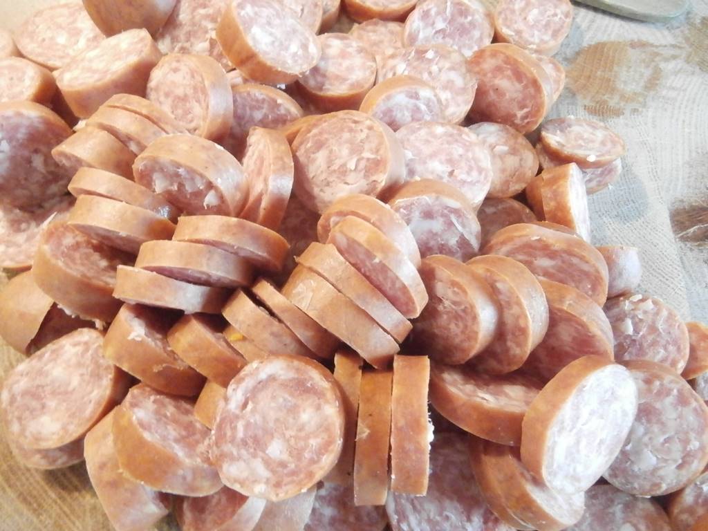 - Die Mettwürste in zentimeterdicke Stücke schneiden, in den Topf damit und weitere 10 Minuten köcheln.
