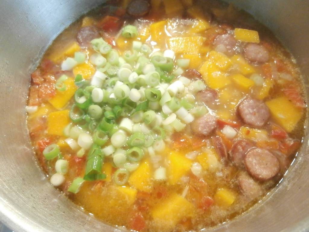 - Als letztes die Lauchzwiebeln dazu, alles gut unterrühren und noch einmal 5 Minuten köcheln.