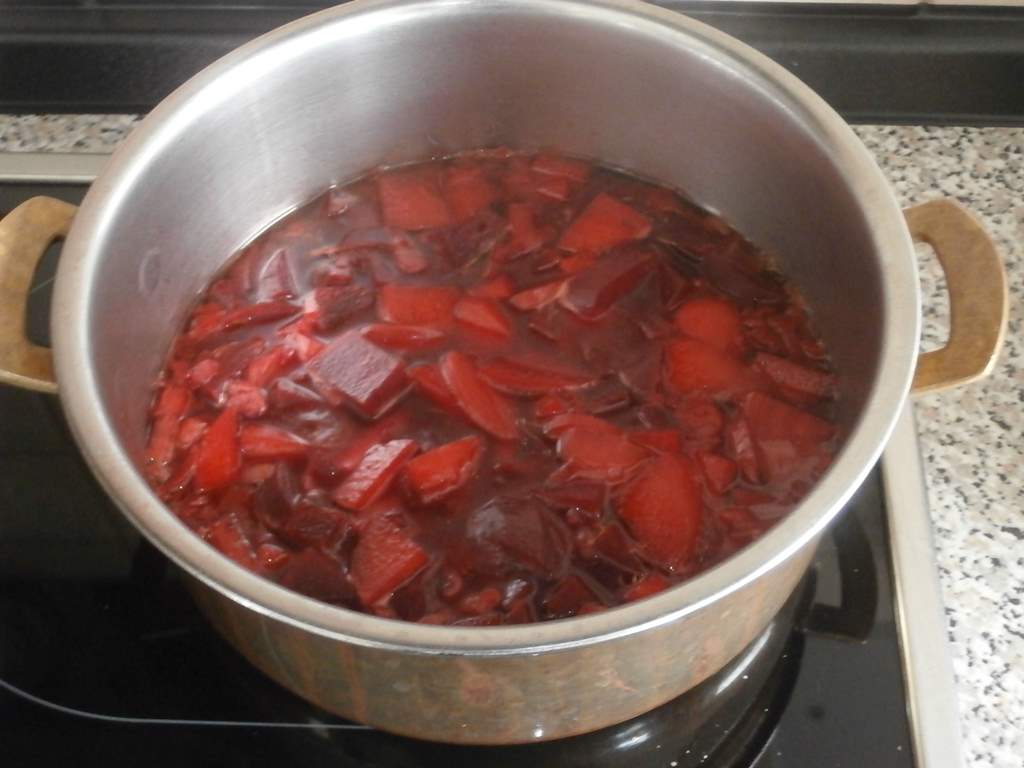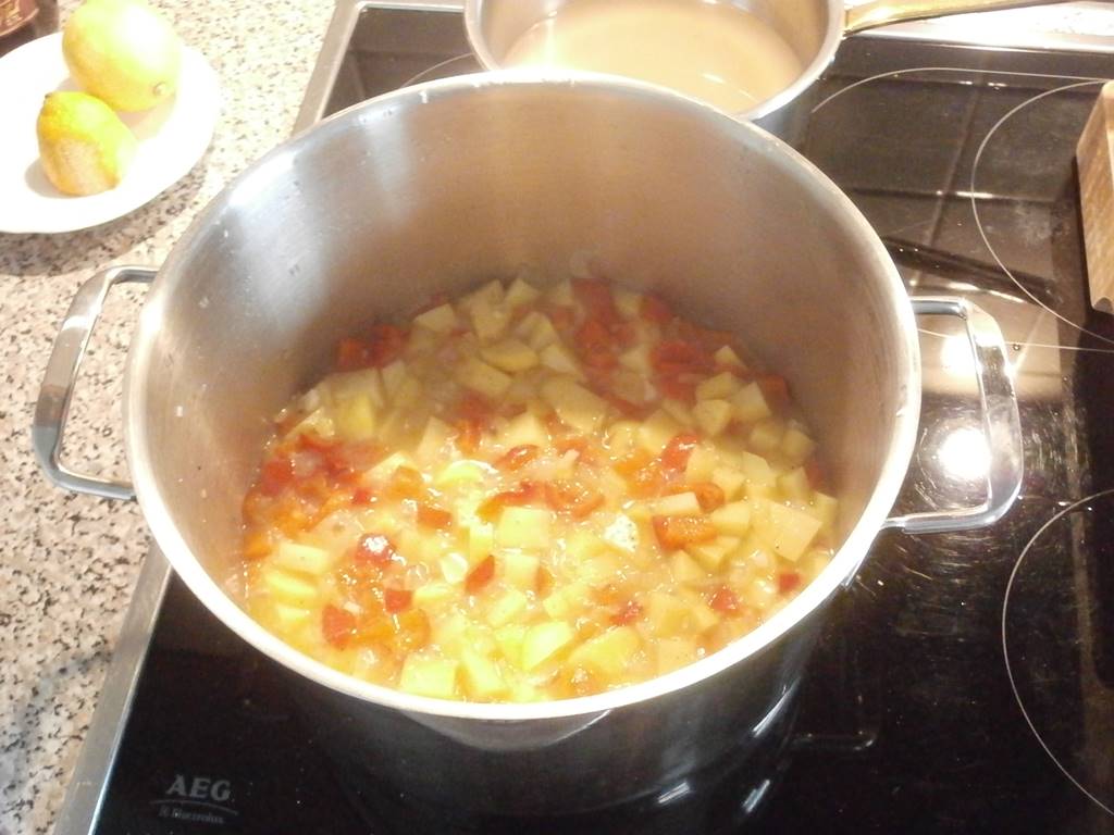 - Deckel auflegen und das Ganze bei milder Hitze ca. 3 Stunden köcheln. Ein wunderbarer Duft zieht durchs Haus.