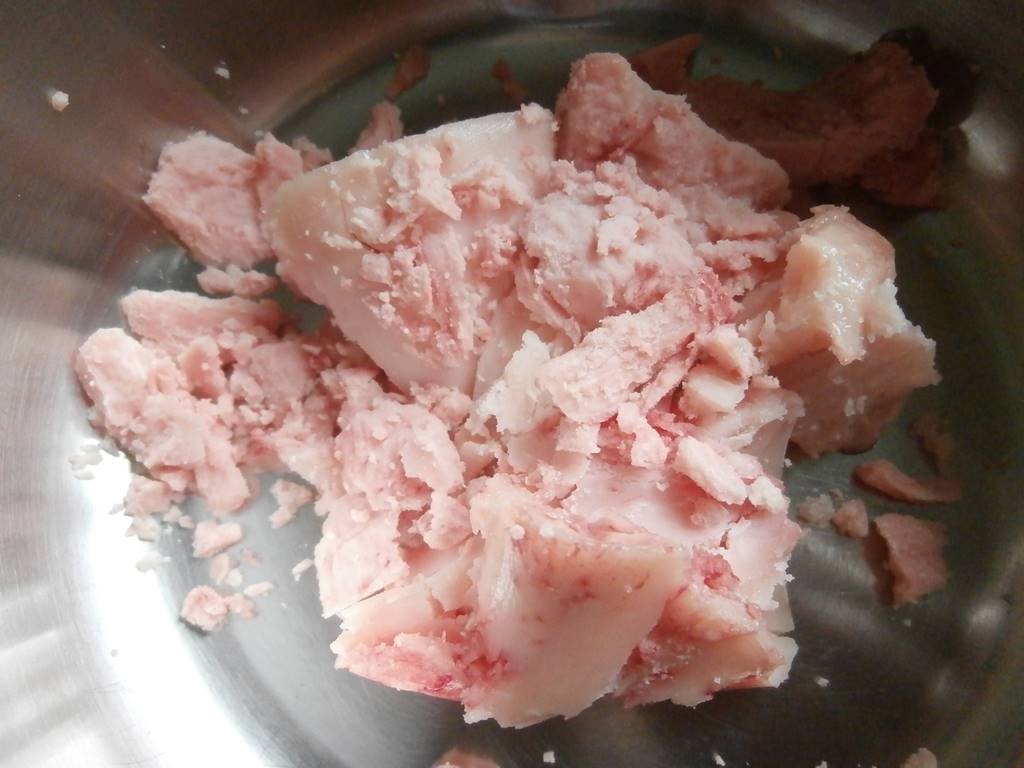 - Am nächsten Tag lässt sich das Fett leicht abnehmen. Das Fleisch aus der Brühe nehmen. Damit lässt sich noch etwas anfangen.