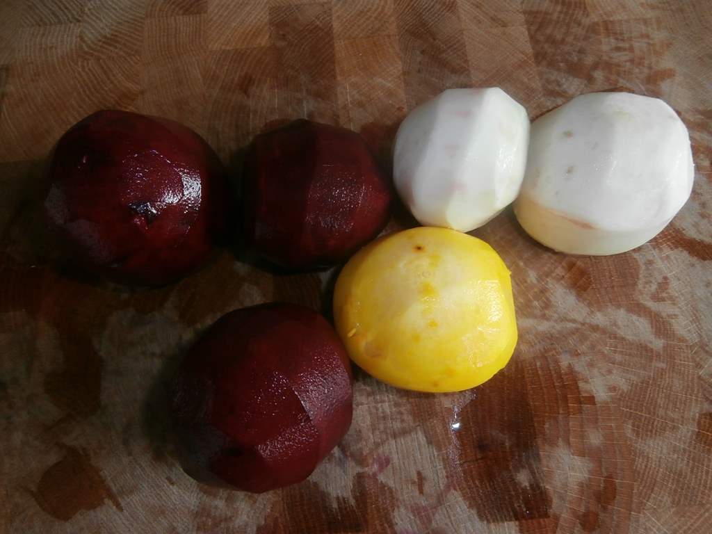 - Die Beete-Knollen mit einem Kartoffelschäler dünn schälen (Frisch geerntete Knollen vorher gut waschen).