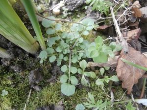 Schon im Februar kommen die kleinen Blattrosetten des Spring-Schaumkrauts (Cardamine impatiens) überall im Garten und an Wegen aus dem Boden. Das auch als Wiesenkresse bezeichnete Kraut hat einen leicht scharfen, an Kresse deutlich erinnernden Geschmack und lässt sich gut in Salaten einsetzen. Man kann die ganze Rosette oder einzelne Blätter verwenden. Wenn die Blütenstängel zu groß sind, wird die ganze Pflanze aber zäh.